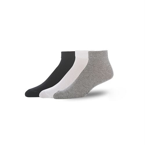 Πολυσυσκευασία 3 ζευγών κάλτσας αστραγάλου (ankle socks). Κατασκευασμένη από πλούσιο και εκλεκτό βαμβάκι πεννιέ ΑΑ για να εξασφαλίζει την υγιεινή του ποδιού, διαμορφωμένη λεπτή πλέξη για ακρίβεια και σιγουριά στην κίνηση, σχεδιασμένη ύφανση με προσθήκη Lycra ώστε να εφαρμόζει τέλεια στο πόδι και μελετημένη ως προς το ύψος και την συμπίεση της ελαστικής ζώνης στον αστράγαλο, με αποτέλεσμα να μην γλιστρά ή σφίγγει το πόδι.