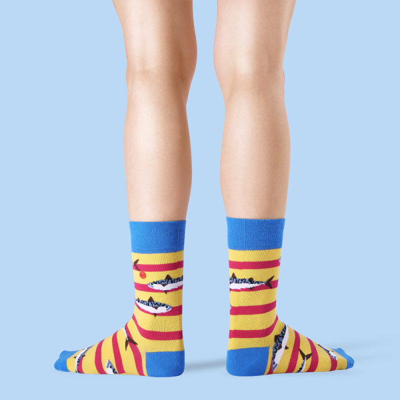 Η τέλεια επιλογή κάλτσες, όχι μόνο για ψαράδες – με το μοντέλο κάλτσες UnaBux BIG CATCH θα προσγειώσετε τα πραγματικά μεγάλα ψάρια. Σε ένα κίτρινο και κόκκινο δακτυλιωμένο φόντο, υπάρχουν μερικά μεγάλα χοντρά ψάρια που κυκλοφορούν εδώ. Τα δάχτυλα των ποδιών, οι γόβες και οι μανσέτες είναι – πώς θα μπορούσε να ήταν διαφορετικά – σε πλούσιο μπλε. Petri Heil και χοντρή λεία!
