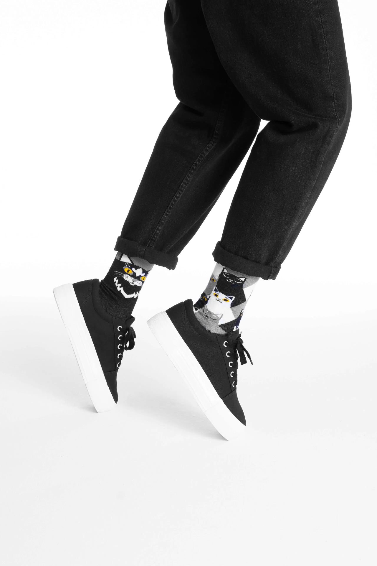Σας κοιτάζουν λαμπερά κίτρινα μάτια στο σκοτάδι; Μπορείτε να είστε σίγουροι ότι είναι μια μαύρη γάτα! Με τις μαύρες κάλτσες γάτας, μπορείτε και εσείς να μπείτε στη νύχτα, χωρίς να ανησυχείτε για κακή τύχη (ακόμα και την Παρασκευή 13).