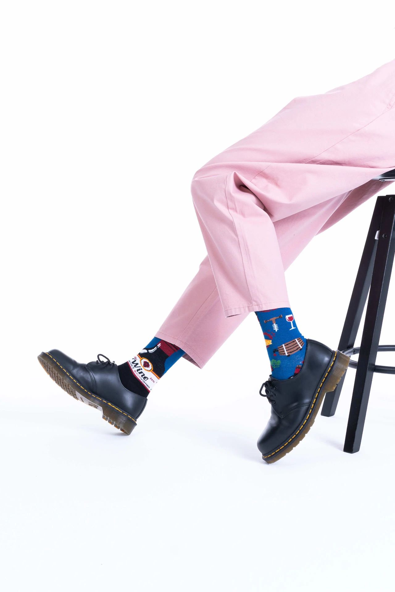 Μια συνδυασμένη αγάπη για το κόκκινο κρασί και τις πολύχρωμες αταίριαστες κάλτσες οδήγησαν σε κάτι για το οποίο κανείς δεν θα γκρινιάζει! Είναι κάπου η ώρα κρασιού, που σημαίνει ότι ήρθε η ώρα να φορέσετε κάλτσες κρασιού!