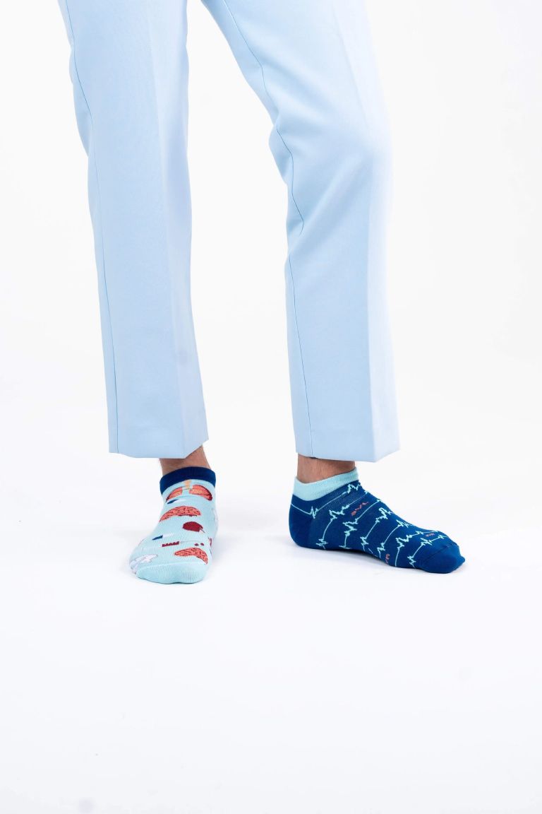 Πρόκειται για αταίριαστες ιατρικές κάλτσες στην καλοκαιρινή έκδοση – κοντές, κρυμμένες στα παπούτσια, αλλά και πάλι εντυπωσιακές! Η αναμφισβήτητη γοητεία τους έγκειται στο ότι δείχνουν αμέσως το καλύτερο πάνω τους, που είναι… ο χτύπος της καρδιάς! Και πνεύμονες. Και τα νεφρά, η λεκάνη και ο εγκέφαλος… και το συκώτι… γιατί, τελικά, τίποτα το ανθρώπινο δεν μας είναι ξένο!