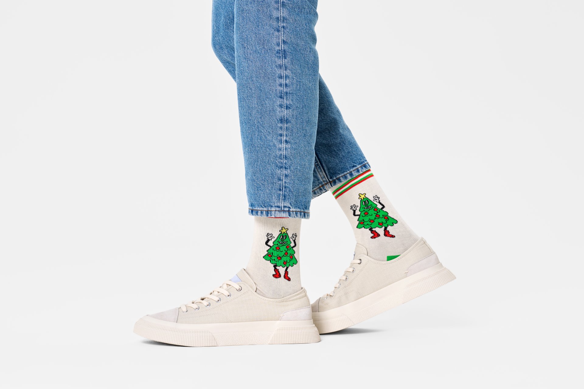 Ας χορέψουμε γύρω από το δέντρο ή γιατί να μην χορέψουμε με το δέντρο; Αυτό το χαρούμενο δέντρο είναι έτοιμο για το jingle bell rock. Κατασκευασμένο από απαλό και αναπνεύσιμο χτενισμένο βαμβάκι και με ενισχυμένη φτέρνα και δάχτυλα. Η κάλτσα Happy Tree φέρνει εορταστική χαρά στα πόδια σας με το ζωηρό, χορευτικό της σχέδιο δέντρου. Με ένα ζωηρό πράσινο δέντρο που περιβάλλεται από πολύχρωμα στολίδια, αυτές οι κάλτσες πληρώματος είναι ιδανικές για να σκορπίσουν τη χαρά των διακοπών. Με ένα διασκεδαστικό και παιχνιδιάρικο μοτίβο, προσθέτουν ένα ποπ χρώμα σε κάθε ντύσιμο, καθιστώντας τα ιδανικά για χριστουγεννιάτικες γιορτές ή για καθημερινή χρήση. Στο Happy Socks, πιστεύουμε στο χρώμα, τη δημιουργικότητα και τη διασκέδαση! Είτε ντύνεστε είτε ντύνεστε, αυτές οι δεντρικές κάλτσες είναι βέβαιο ότι θα φέρουν ένα χαμόγελο στο πρόσωπό σας. Τέλειο δώρο για: οικοδεσπότες χριστουγεννιάτικων πάρτι και εορταστικούς φίλους.