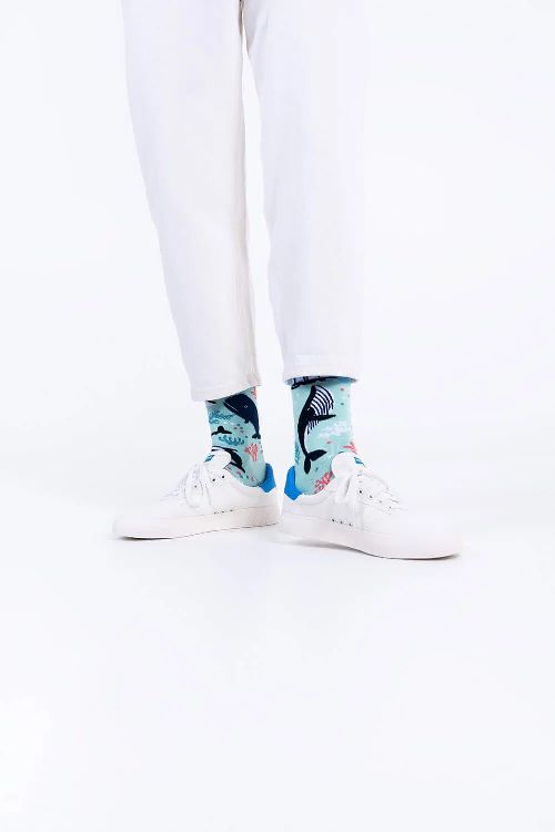 Επεκτείνουμε τον ωκεανό των σχεδίων μας με ένα μοντέλο με… ωκεανό! Μεγαλοπρεπείς φάλαινες, φιλικές όρκες, υπέροχα κοράλλια – όλα αυτά λουσμένα σε παστέλ χρώματα, χωρίς τα οποία δεν μπορούμε να φανταστούμε την καλοκαιρινή μας γκαρνταρόμπα. Εδώ είναι νέες αταίριαστες κάλτσες – διακοπές, θετικές, ιδανικές για το γιοτ και τη γη! Οι αταίριαστες κάλτσες ωκεανού μας έχουν σχεδιαστεί για να συμπληρώνουν τα καλοκαιρινά στυλ, να προσελκύουν την προσοχή και να δημιουργούν φιλοφρονήσεις. Αλλά δεν είναι μόνο αυτό -σε κάθε βήμα πρέπει επίσης να μας υπενθυμίζουν ότι οι ωκεανοί είναι ο θησαυρός μας- ας τους φροντίσουμε μαζί, όπως φροντίζουμε και τα πόδια σας!