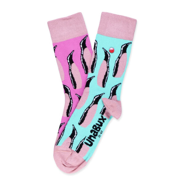 Πιτς, Πατς, Πιγκουίνος, κουνάνε όμορφα σε κύκλο! Στο σύνθετο μοντέλο κάλτσας UnaBux PENGUIN FEET, μερικά από τα χαριτωμένα πουλιά με τα πόδια του πάγου χορεύουν σε διαφορετικά χρώματα φόντου ανά κάλτσα προς το Νότιο Πόλο. Και είστε ευπρόσδεκτοι να συμμετάσχετε. Γιατί με τις κάλτσες μας, τα πόδια σας δεν είναι μόνο ζεστά, αλλά και ιδιαίτερα χαριτωμένα. Κρυφοκοιτάζω!