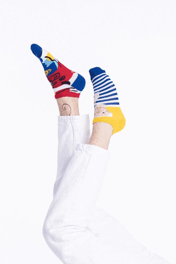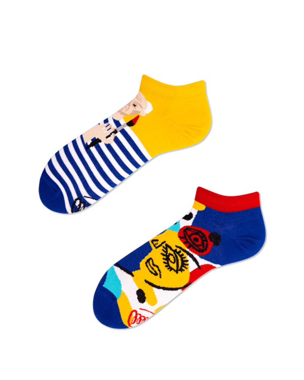 Η ζωγραφική κάλτσες για γυναίκες και άνδρες σε μια σύντομη εκδοχή είναι ένα πραγματικό έργο τέχνης που μπορεί να σας συνοδεύσει σε κάθε σας βήμα! Βγάλτε τα εκθέματα από το μουσείο και παρουσιάστε τα στο ευρύ κοινό σε μια ελαφρώς πιο χαλαρή και προσιτή εκδοχή. Και ναι – μπορείτε να τους τραβήξετε φωτογραφίες! Οι κάλτσες ποδιών με μοτίβο εμπνευσμένο από τον Πικάσο θα σας αφήσουν να ξεκινήσετε κάθε μέρα με έμπνευση. Μεταφέρετέ τα σε γραφικά μέρη, εμπνευστείτε από τα σχήματα που συναντούν και χρησιμοποιήστε δημιουργικά το καλοκαίρι – ακριβώς όπως ο Πικάσο χρησιμοποίησε κάθε κομμάτι καμβά!
