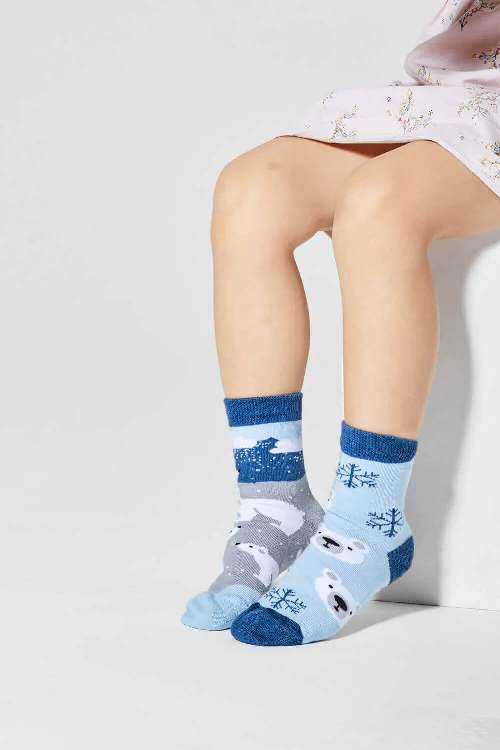 Οι αξιολάτρευτες παιδικές κάλτσες με πολικές αρκούδες σε ένα χιονισμένο τοπίο θα είναι τέλειες όχι μόνο το χειμώνα. Εκτός από την κατασκευή ενός χιονάνθρωπου ή το έλκηθρο, μπορείτε επίσης να εμπλακείτε με επιτυχία σε άλλες αταξίες και φάρσες. Το μόνο που χρειάζεστε είναι λίγη φαντασία, από την οποία τα παιδιά… έχουν μπόλικη. Σε αντίθεση με ό,τι φαίνεται, οι παιδικές κάλτσες με πολικές αρκούδες κρατούν τα μικρά ζεστά και τους επιτρέπουν να παίζουν άνετα μέχρι να πέσουν. Γνωρίζουμε ότι για τα παιδιά, οι κάλτσες είναι ένα εξαιρετικά σημαντικό στοιχείο της γκαρνταρόμπας τους – βγαίνουν πίσω από το μπατζάκι του παντελονιού και μπορείτε να τις δείξετε στους φίλους και τους συναδέλφους σας. Και στην περίπτωση αυτού του μοντέλου – είναι αυτό.