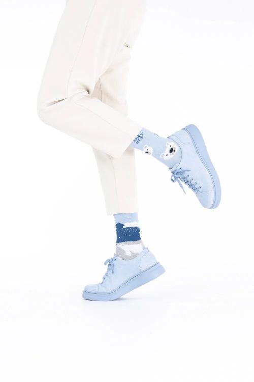 Κάλτσες για πραγματικά γλυκά αρκουδάκια και νιφάδες χιονιού. Κομψό μπλε, πνευματώδης εκτύπωση, εξαιρετικής ποιότητας. Αυτές οι κάλτσες είναι το τέλειο δώρο για όποιον είναι το αρκουδάκι κάποιου ή… βασίλισσα του πάγου. Μου αρέσουν 😉 Οι πολικές αρκούδες είναι οι μπλε και γκρι κάλτσες αρκουδάκι.