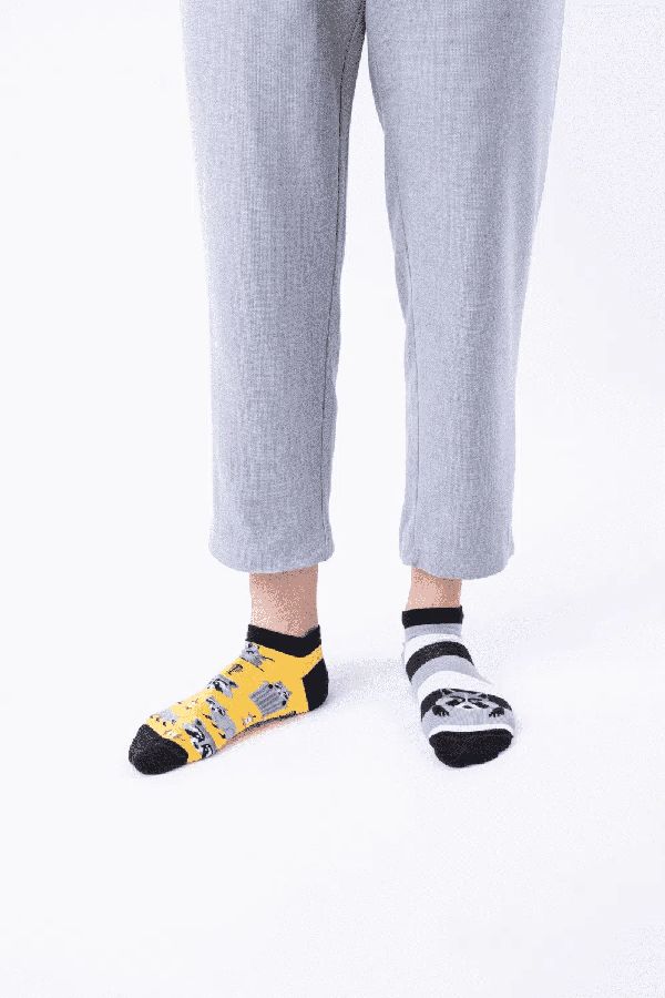 Ένα ρακούν φροντίζει πάντα τα ρούχα του και οι ασπρόμαυρες ρίγες το κάνουν πιο έξυπνο σε κάθε βήμα – ακόμα και με τον πιο ζεστό καιρό. Πότε είναι λοιπόν η καλύτερη στιγμή για να αγοράσετε αταίριαστες κάλτσες: το βράδυ ή το πρωί; Ένα είναι σίγουρο, ότι ένα ρακούν δεν θα χάσει ποτέ τα μοδάτα σνακ!