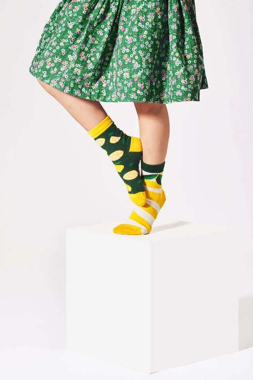Λεμονάκια για ξινισμένα πρόσωπα! Αυτές οι παιδικές κάλτσες είναι μοναδικές γιατί όχι μόνο βελτιώνουν τη διάθεσή σας αμέσως αφού τις φορέσετε (πράγμα ιδιαίτερα σημαντικό για τα παιδιά – ειδικά το πρωί), αλλά δείχνουν και εξαιρετικά κομψές και μοδάτες! Τι περισσότερο θα μπορούσατε να θέλετε; Αυτές οι παιδικές κάλτσες είναι τέλειες για το σχολείο, το σπίτι και την αυλή. Για παιχνίδι, ξεκούραση και ύπνο (αν τα πόδια σας είναι κρύα). Επιπλέον, θα ταιριάξουν τέλεια με φούστες, παντελόνια και πιτζάμες. Το ιδανικό για ένα παιδί; Σίγουρος!