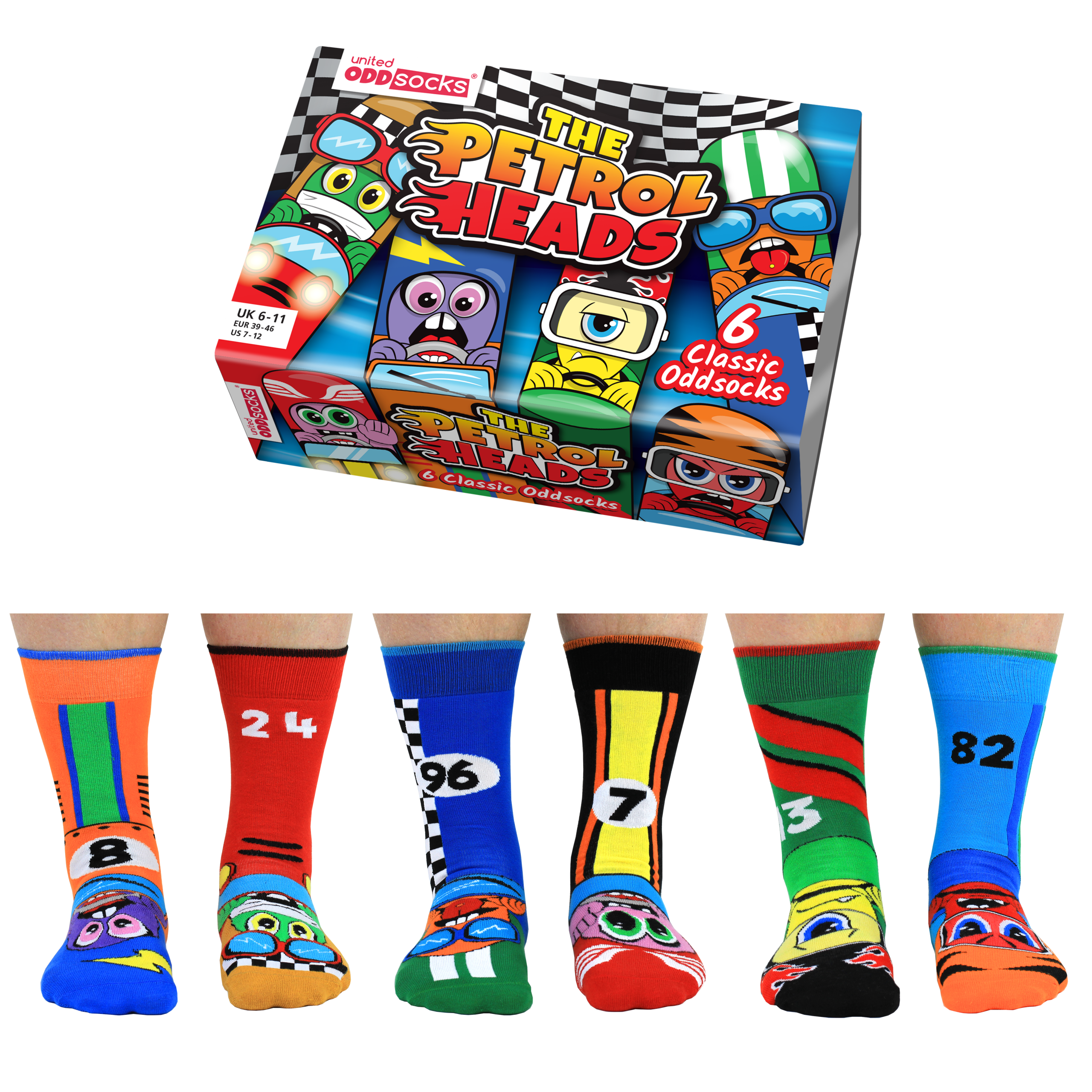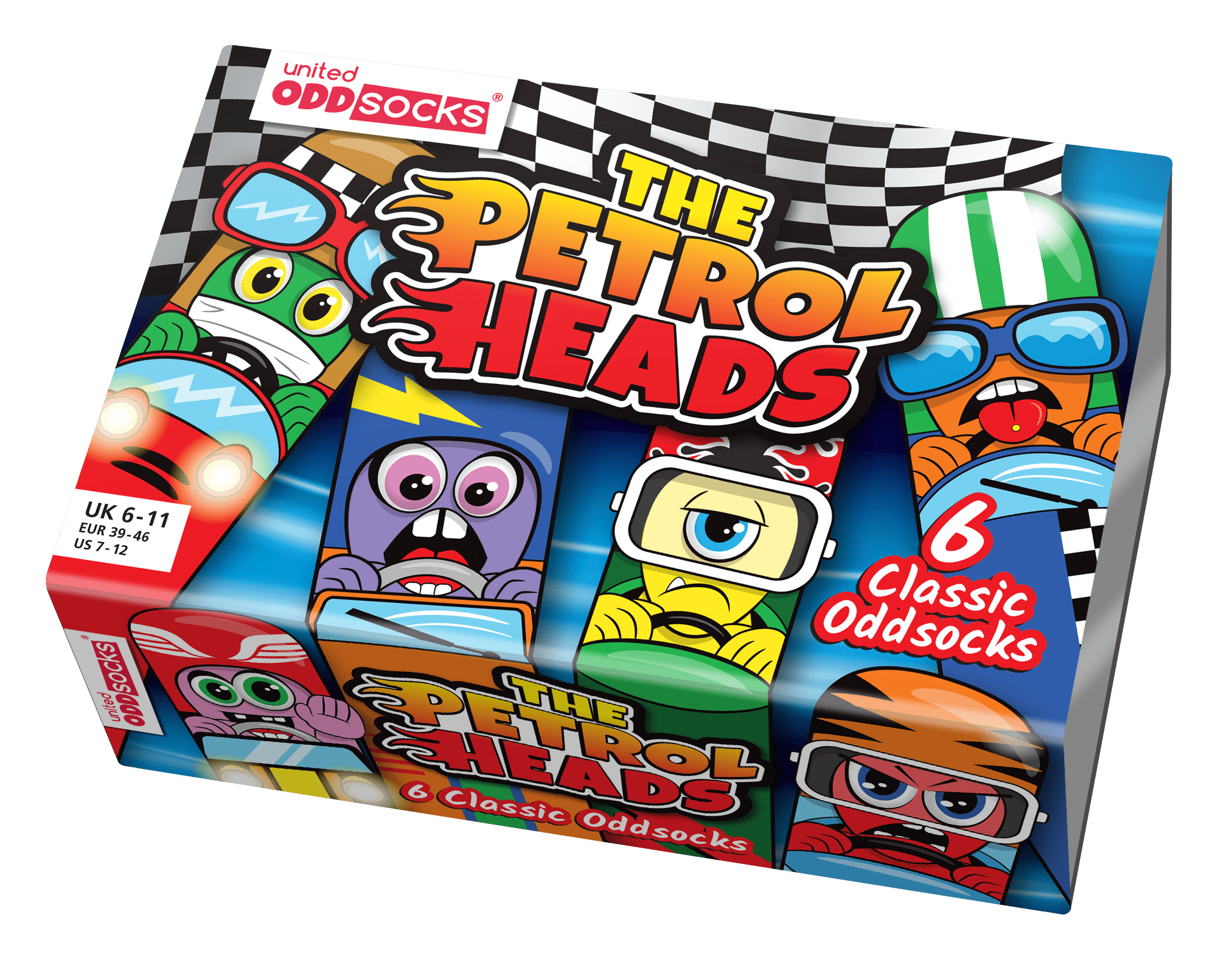 Γνωρίστε τους Petrol Heads – τους τρελούς δρομείς μας, έτοιμοι να αγωνιστούν μέχρι τον τερματισμό! Ήρθε η ώρα να βάλετε φρένο στις βαρετές κάλτσες και να δώσετε στα πόδια σας λίγη ιπποδύναμη! 6 έμβολα Oddsocks για ανάμειξη και αναντιστοιχία, απλά επιλέξτε δύο και ξεκινήστε τη μέρα σας άψογα!