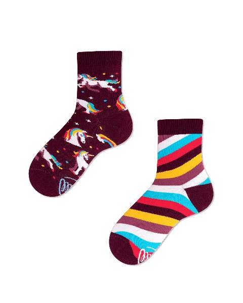 Οι παιδικές κάλτσες με μοτίβο μονόκερου θα απευθύνονται τόσο σε νεαρούς μάγους όσο και σε εξαιρετικές μάγισσες. Είναι μοναδικά – όχι μόνο λόγω της εικόνας ενός ζώου παραμυθιού, αλλά και λόγω της μυστικής δύναμης του να προκαλεί χαμόγελα και να τιθασεύει τους μορφασμούς! Οι αστείες κάλτσες από το Many Mornings είναι ένας τρόπος να κάνετε τα μικρά σας όνειρα πραγματικότητα κάθε πρωί. Ακόμα και αυτά που είναι εξωπραγματικά σαν μονόκερος στα πόδια. Εμπνευσμένοι από τη φαντασία των παιδιών, προσπαθούμε να ταιριάξουμε τα νήπια στη δημιουργικότητά τους – και νομίζω ότι τα πάμε αρκετά καλά!